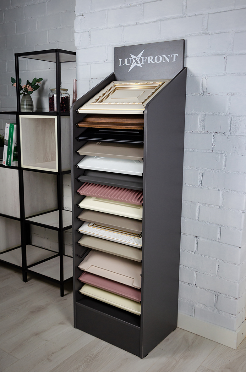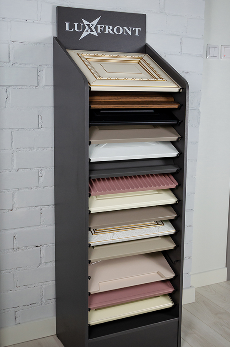 Благодаря удобству эксплуатации и презентабельному внешнему виду, экспозитор легко интегрируется в любое выставочное пространство, торговую точку или офис продаж. Образцы фасадов изготавливаются по индивидуальным заказам, позволяя создавать уникальный контент, соответствующий предпочтениям целевой аудитории.